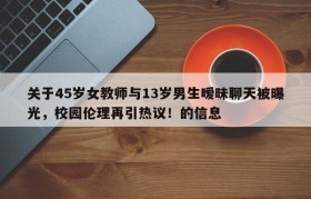 关于45岁女教师与13岁男生暧昧聊天被曝光,校园伦理再引热议!的信息