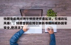 特朗普前顾问博尔顿因泄密遭起诉,引爆政坛风暴!,特朗普回应博尔顿新书爆料威胁国家安全,他违法了