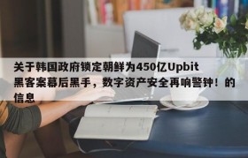 关于韩国政府锁定朝鲜为450亿Upbit黑客案幕后黑手,数字资产安全再响警钟!的信息