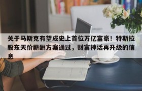 关于马斯克有望成史上首位万亿富豪!特斯拉股东天价薪酬方案通过,财富神话再升级的信息