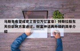 马斯克有望成史上首位万亿富豪!特斯拉股东天价薪酬方案通过,财富神话再升级的简单介绍