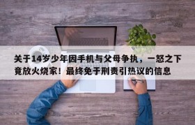 关于14岁少年因手机与父母争执,一怒之下竟放火烧家!最终免于刑责引热议的信息
