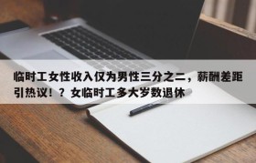 临时工女性收入仅为男性三分之二,薪酬差距引热议!?女临时工多大岁数退休