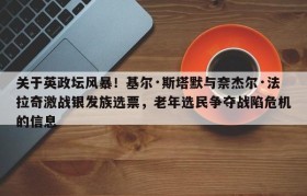 关于英政坛风暴!基尔·斯塔默与奈杰尔·法拉奇激战银发族选票,老年选民争夺战陷危机的信息