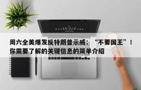 周六全美爆发反特朗普示威:“不要国王”!你需要了解的关键信息的简单介绍