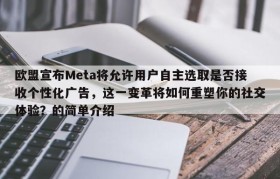 欧盟宣布Meta将允许用户自主选取是否接收个性化广告,这一变革将如何重塑你的社交体验?的简单介绍
