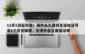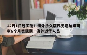 12月1日起实施!海外永久居民无返加证可享6个月宽限期,无境外永久居留证明