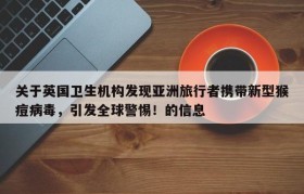 关于英国卫生机构发现亚洲旅行者携带新型猴痘病毒,引发全球警惕!的信息