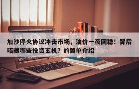 关于加沙停火协议冲击市场,油价一夜回稳!背后暗藏哪些投资玄机?的信息