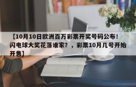 【10月10日欧洲百万彩票开奖号码公布!闪电球大奖花落谁家?,彩票10月几号开始开售】