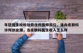 年轻医生纷纷放弃住院医师岗位,涌向皮肤科诊所创业潮,当皮肤科医生收入怎么样