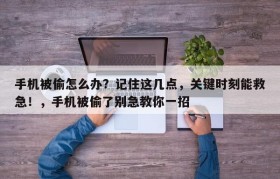 手机丢了第一时间该怎么办?大家记住这几点 1、如果出现这种情况手机被偷怎么办?记住这几点,关键时刻能...