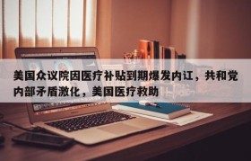 美国众议院因医疗补贴到期爆发内讧,共和党内部矛盾激化,美国医疗救助
