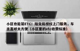 小区也能装ETC!陆交局授权上门服务,车主直呼太方便(小区里的etc收费标准)