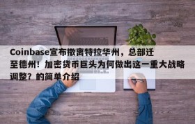 Coinbase宣布撤离特拉华州,总部迁至德州!加密货币巨头为何做出这一重大战略调整?的简单介绍