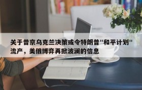 关于普京乌克兰决策或令特朗普"和平计划"流产,美俄博弈再掀波澜的信息