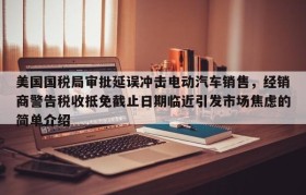 美国国税局审批延误冲击电动汽车销售,经销商警告税收抵免截止日期临近引发市场焦虑的简单介绍