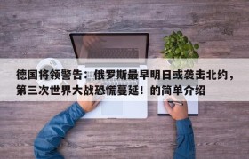 德国将领警告:俄罗斯最早明日或袭击北约,第三次世界大战恐慌蔓延!的简单介绍
