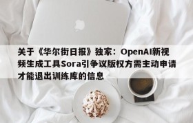关于《华尔街日报》独家:OpenAI新视频生成工具Sora引争议版权方需主动申请才能退出训练库的信息