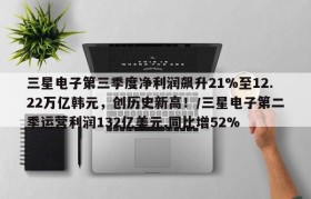 三星电子第三季度净利润飙升21%至12.22万亿韩元,创历史新高!/三星电子第二季运营利润132亿美元,同比增52%