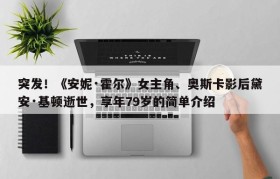 突发!《安妮·霍尔》女主角、奥斯卡影后黛安·基顿逝世,享年79岁的简单介绍