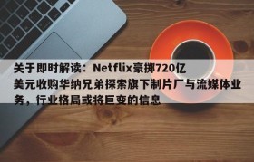 关于即时解读:Netflix豪掷720亿美元收购华纳兄弟探索旗下制片厂与流媒体业务,行业格局或将巨变的信息