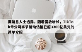 据消息人士透露,随着营收增长,TikTok母公司字节跳动估值已超3300亿美元的简单介绍