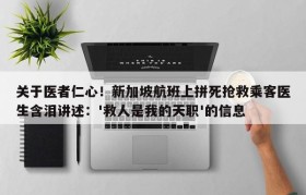 关于医者仁心!新加坡航班上拼死抢救乘客医生含泪讲述:'救人是我的天职'的信息