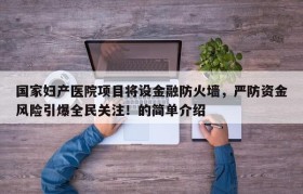 国家妇产医院项目将设金融防火墙,严防资金风险引爆全民关注!的简单介绍