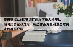 英国豪掷1.5亿英镑打造水下无人机舰队!俄乌局势紧张之际,新型作战力量引发全球关注的简单介绍