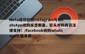 Meta成功驳回Instagram与WhatsApp收购反垄断案,巨头并购再获法律支持!/facebook收购whatsapp价值来源