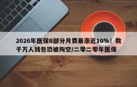 2026年医保B部分月费暴涨近10%!数千万人钱包恐被掏空/二零二零年医保