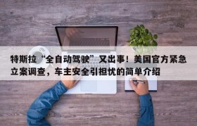 特斯拉“全自动驾驶”又出事!美国官方紧急立案调查,车主安全引担忧的简单介绍