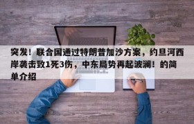 突发!联合国通过特朗普加沙方案,约旦河西岸袭击致1死3伤,中东局势再起波澜!的简单介绍