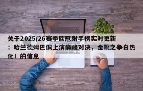 关于2025/26赛季欧冠射手榜实时更新:哈兰德姆巴佩上演巅峰对决,金靴之争白热化!的信息