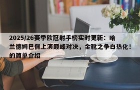 2025/26赛季欧冠射手榜实时更新:哈兰德姆巴佩上演巅峰对决,金靴之争白热化!的简单介绍
