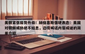 美朝紧张局势升级!赫格塞斯强硬表态:美国对朝鲜威胁绝不姑息,边境喊话内容成谜的简单介绍