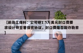 【前员工爆料:公司砸1.5万美元封口费要求设计师签署保密协议,封口费是否敲诈勒索】