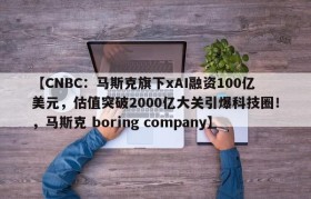 【CNBC:马斯克旗下xAI融资100亿美元,估值突破2000亿大关引爆科技圈!,马斯克 boring company】