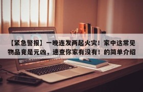 【紧急警报】一晚连发两起火灾!家中这常见物品竟是元凶,速查你家有没有!的简单介绍