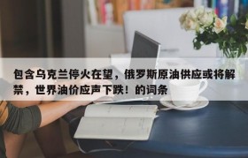 【解读】俄乌“停火谈判”有望短期达成?原油系重挫:原油、沥青暴跌超7%... 油价表现:继昨晚重挫跌...
