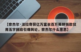 【奈杰尔·法拉奇获亿万富翁百万英镑捐款仅用五字回应引爆舆论,奈杰尔什么意思】