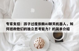 专家支招:孩子过度依赖AI聊天机器人,如何拯救他们的独立思考能力?的简单介绍