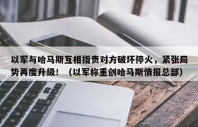 以军与哈马斯互相指责对方破坏停火,紧张局势再度升级!(以军称重创哈马斯情报总部)