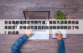 包含美联储降息预期升温,美股大涨美债收益率回落!市场狂欢背后的投资机会你抓住了吗?的词条