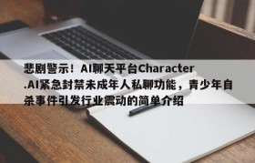 悲剧警示!AI聊天平台Character.AI紧急封禁未成年人私聊功能,青少年自杀事件引发行业震动的简单介绍