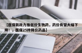 【医保新政力推低价生物药,药价有望大幅下降!,医保25种降价药品】