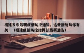 福建发布最新疫情防控通知,这些措施与你有关!(福建疫情防控指挥部最新通告)