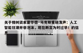 关于橡树资本霍华德·马克斯重磅发声:人工智能狂潮并非泡沫,现在断言为时过早!的信息