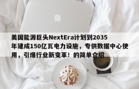美国能源巨头NextEra计划到2035年建成150亿瓦电力设施,专供数据中心使用,引爆行业新变革!的简单介绍